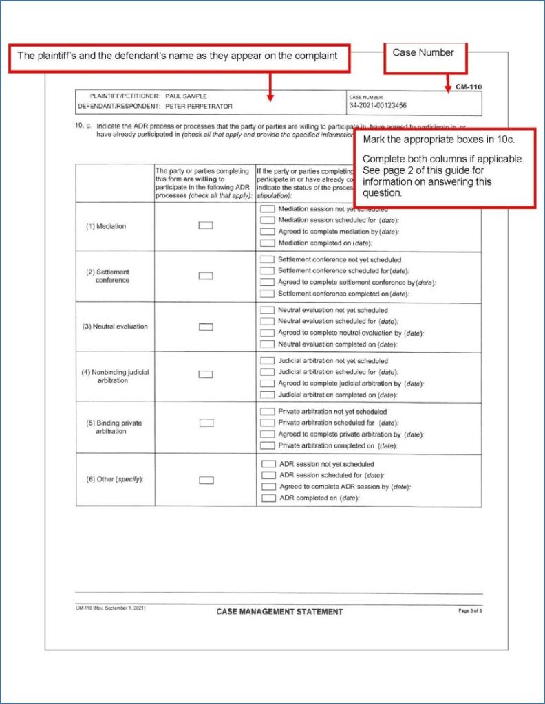 Completing Paragraph 10c of the Case Management Statement (Alternative Dispute Resolution)