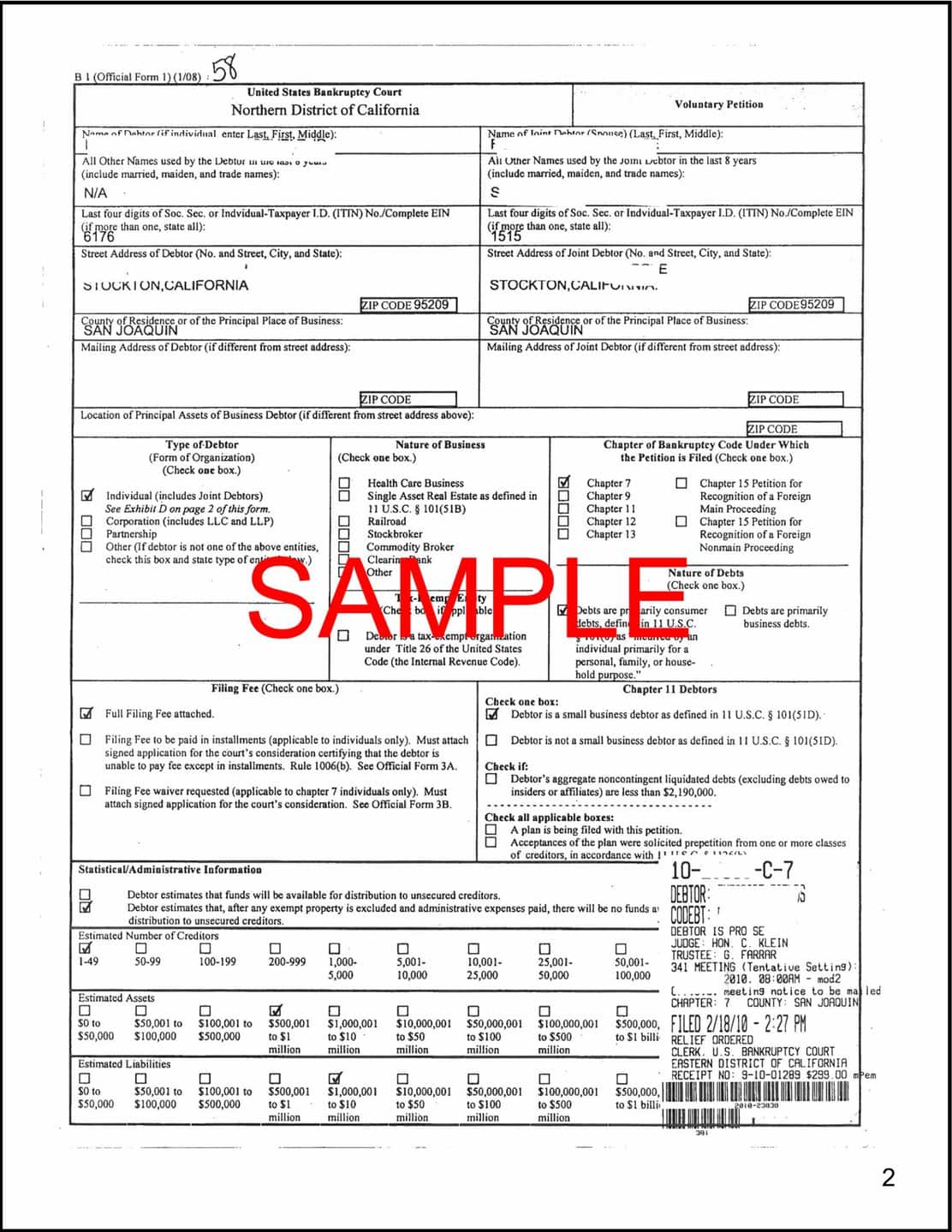 You will also need a copy of your filed Petition for Bankruptcy (first page), showing the date you filed and the bankruptcy case number.